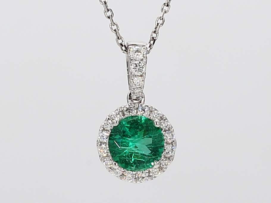 ROUND EMERALD & ROUND DIAMOND 18KW PENDANT