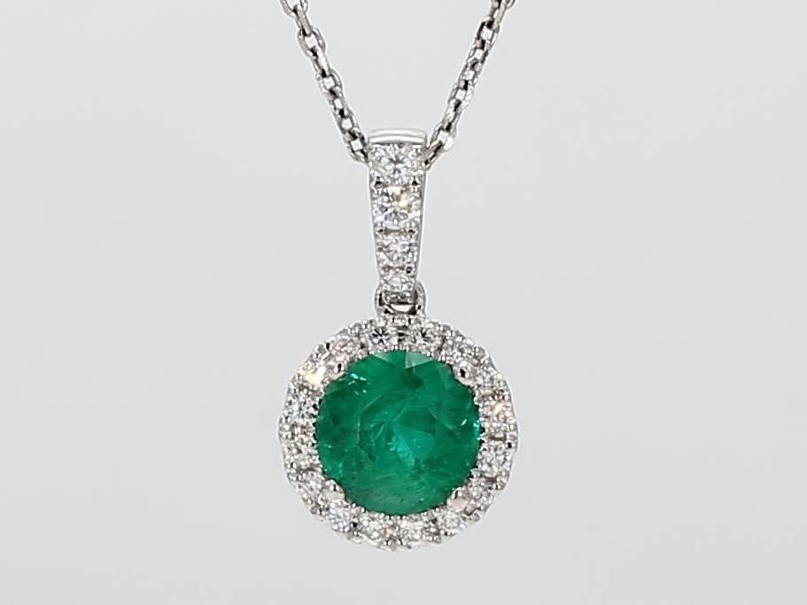 ROUND EMERALD & ROUND DIAMOND 14KW PENDANT