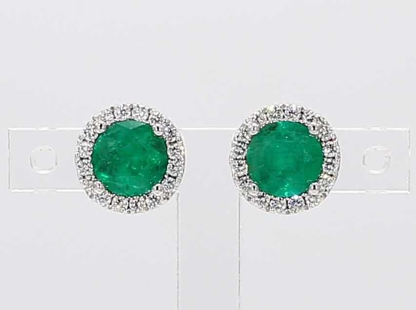 ROUND EMERALD & ROUND DIAMOND 14KW EARRING