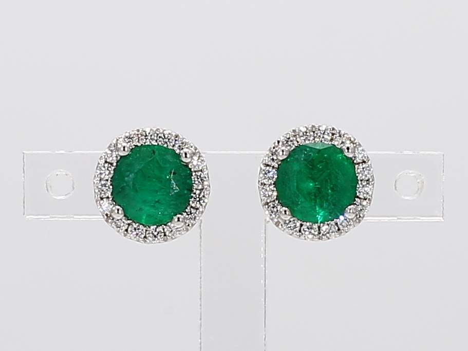 ROUND EMERALD & ROUND DIAMOND 14KW EARRING