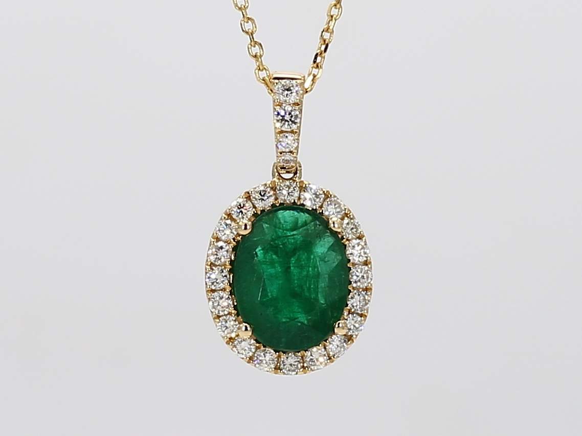 OVAL EMERALD & ROUND DIAMOND 14KY PENDANT