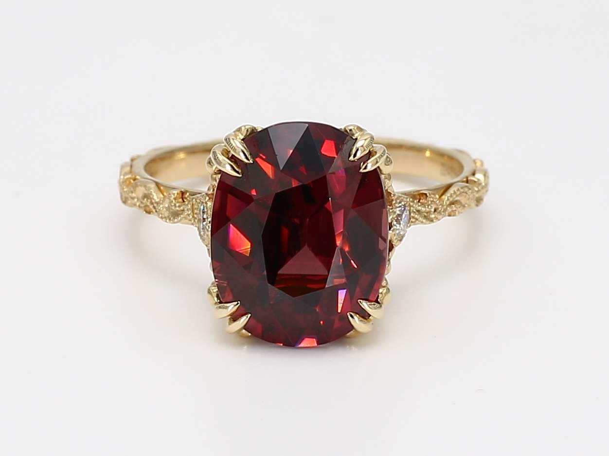 OVAL RED ZIRCON & ROUND DIAMOND 14KY RING