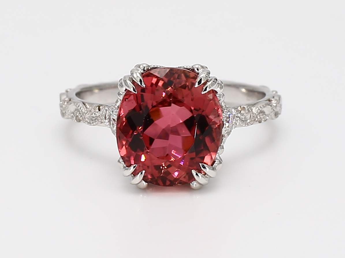 OVAL PINK TOURMALINE & ROUND DIAMOND 14KW RING