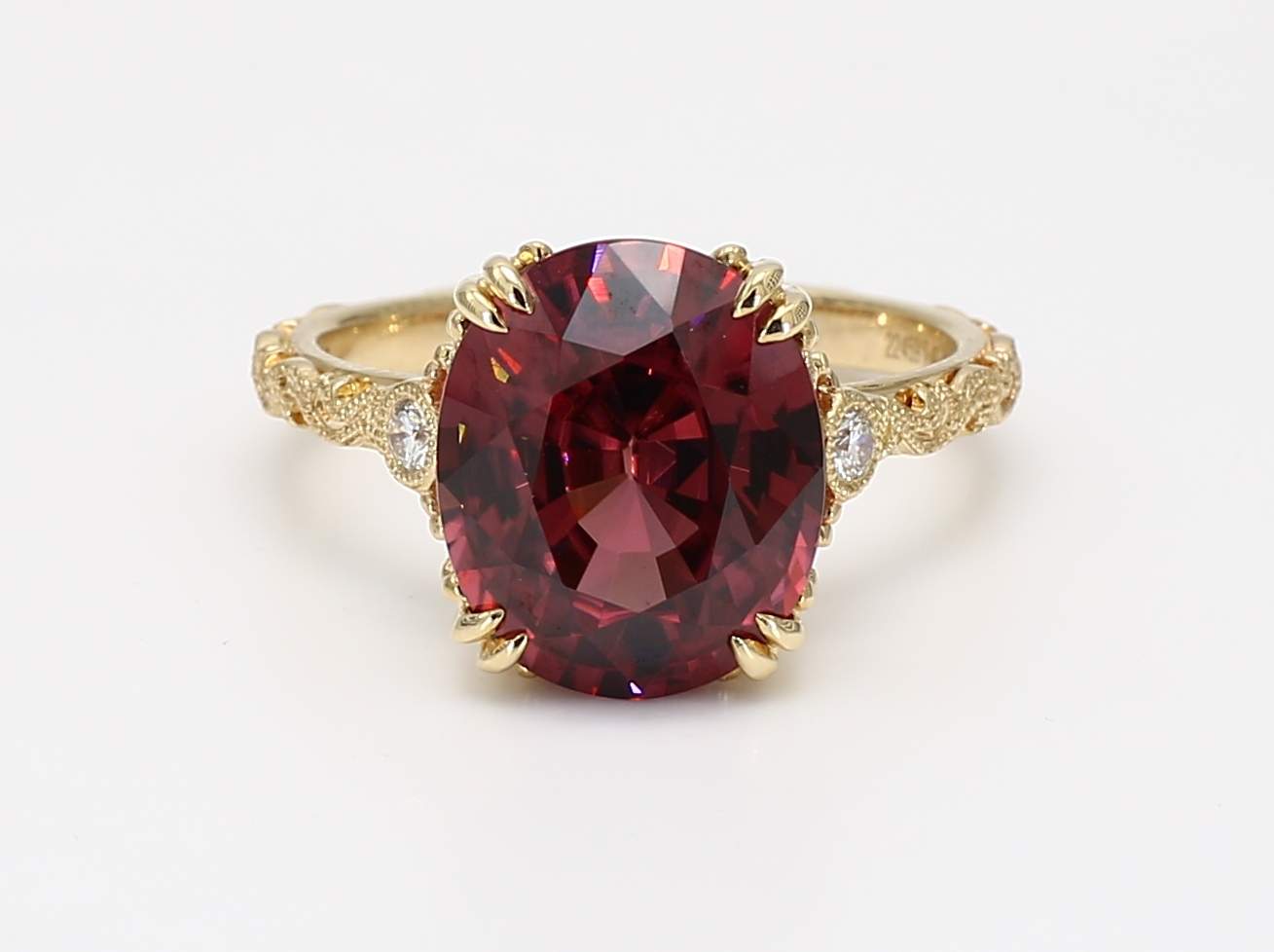 OVAL RED ZIRCON & ROUND DIAMOND 14KY RING