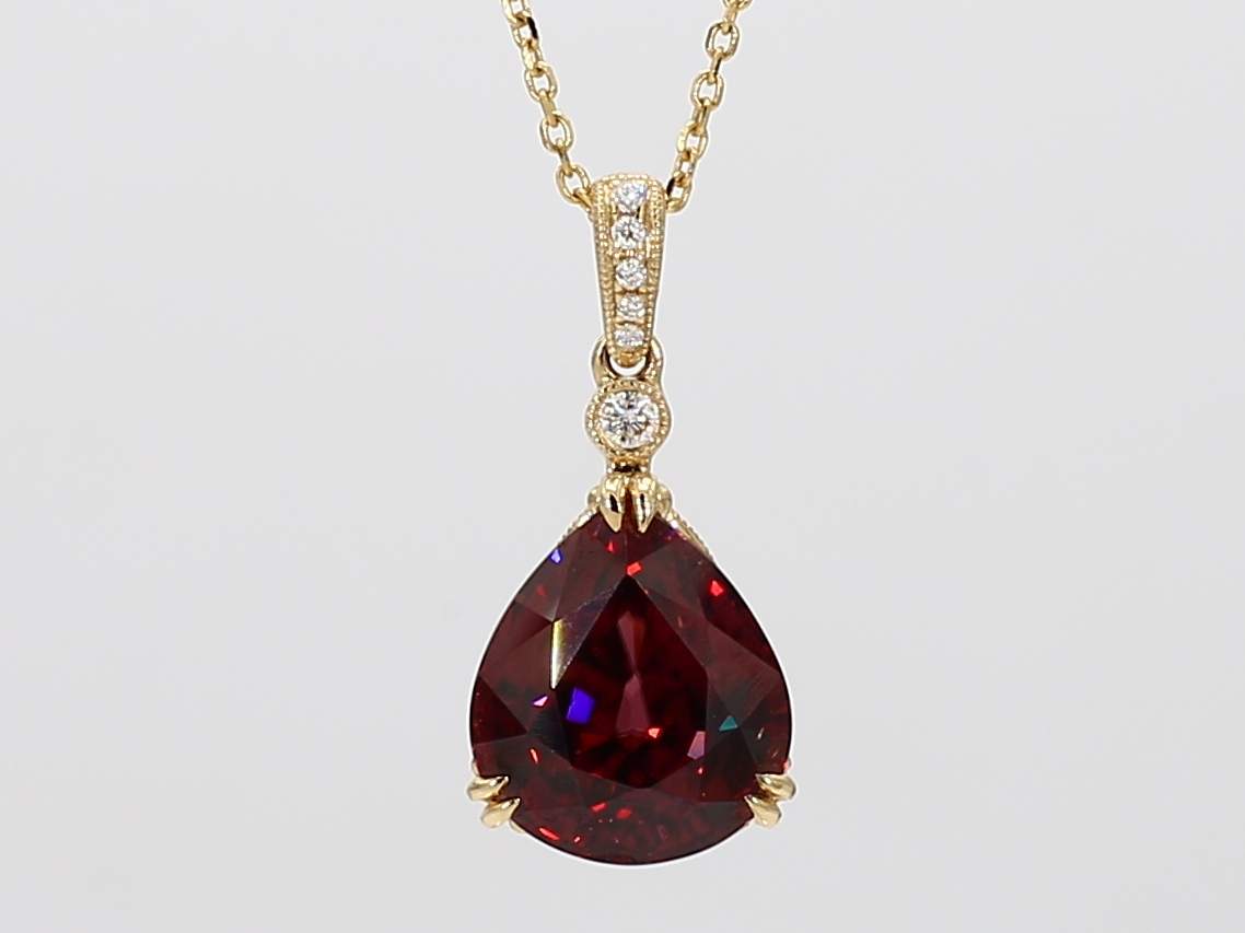 PEAR SHAPE RED ZIRCON & ROUND DIAMOND 14KY PENDANT