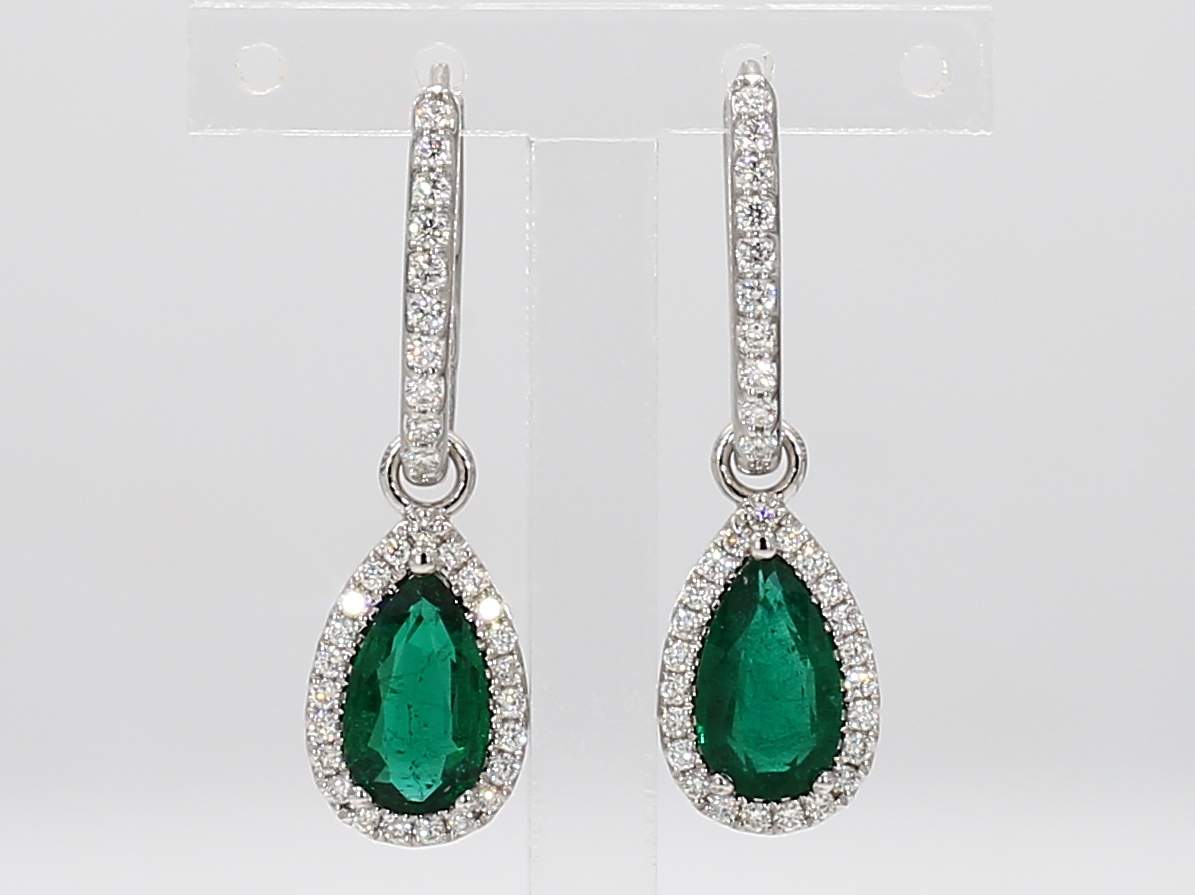 PEAR SHAPE EMERALD EARRING & ROUND DIAMOND 14KW EARRING