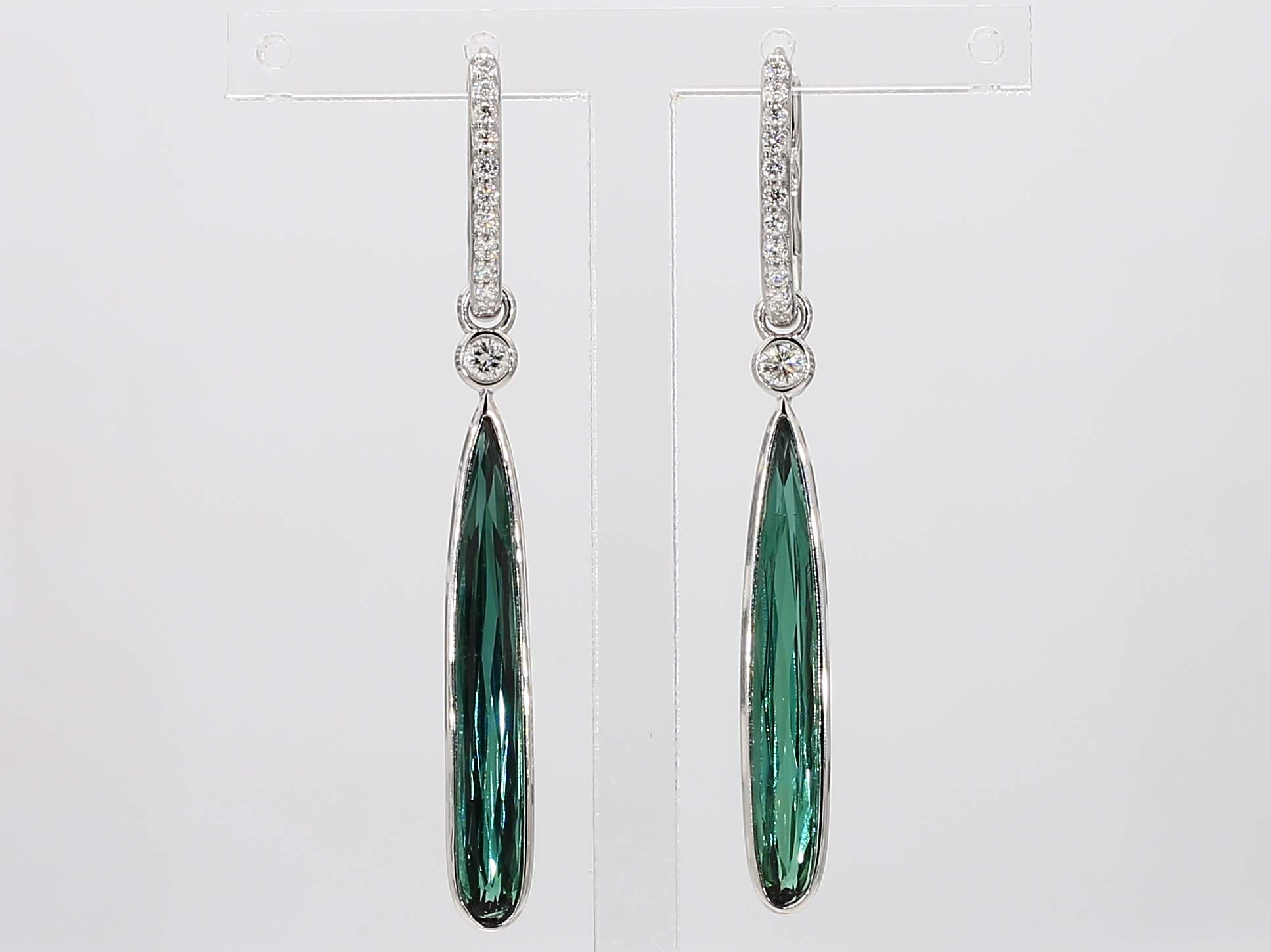 PEAR SHAPE GREEN TOURMALINE & ROUND DIAMOND 14KW EARRING