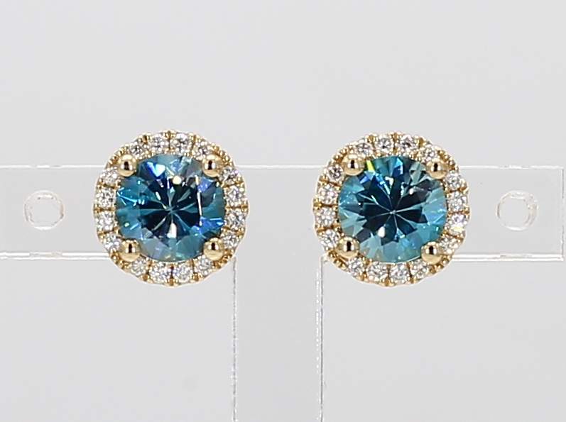 ROUND ZIRCON & ROUND DIAMOND 14KY EARRING