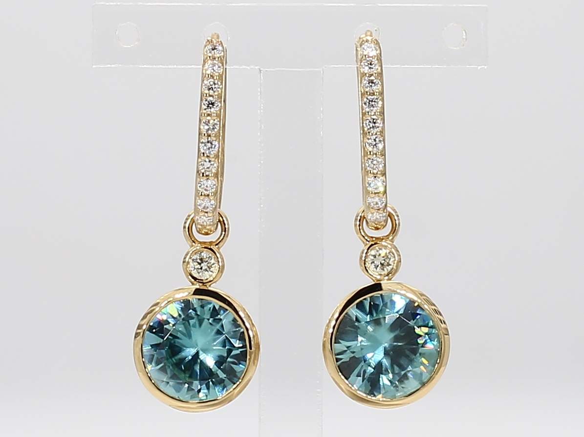 ROUND BLUE ZIRCON & ROUND DIAMOND 14KY EARRING