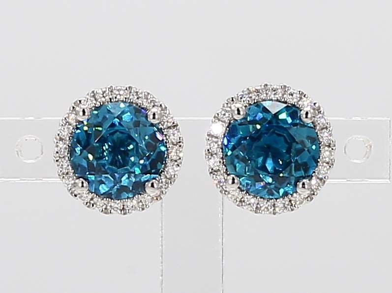 ROUND ZIRCON & ROUND DIAMOND 14KW EARRING