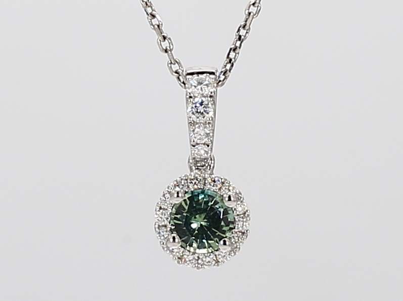 ROUND UNHEATED GREEN SAPPHIRE & ROUND DIAMOND 14KW PENDANT
