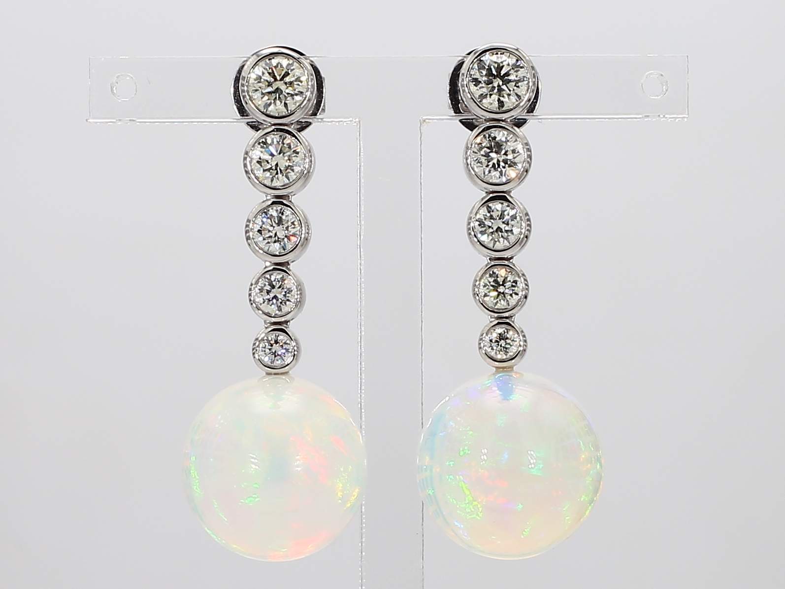 OPAL BALL & ROUND DIAMOND 14KW EARRING