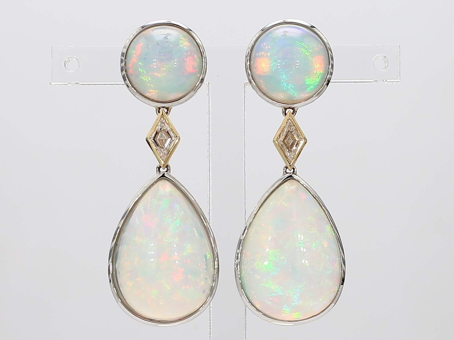 ROUND OPAL KITE SHAPE DIAMOND & PEAR SHAPE OPAL 14KT EARRING