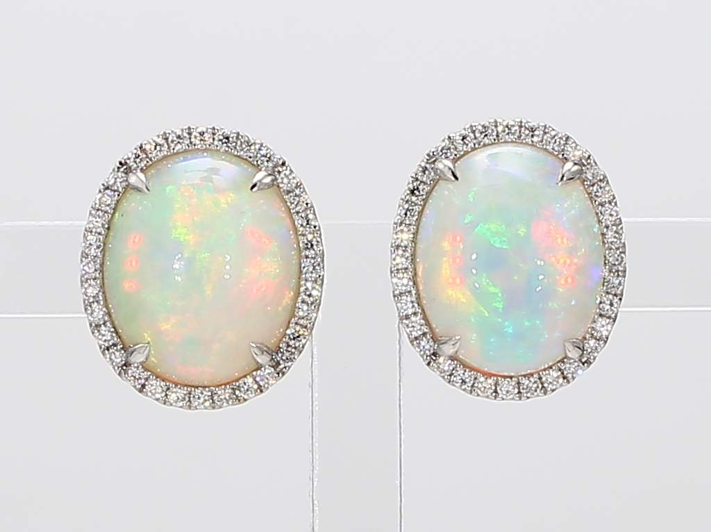 OVAL OPAL & ROUND DIAMOND 14KW EARRING