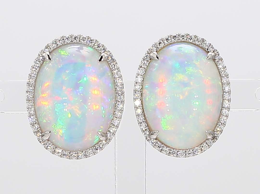 OVAL OPAL & ROUND DIAMOND 14KW EARRING