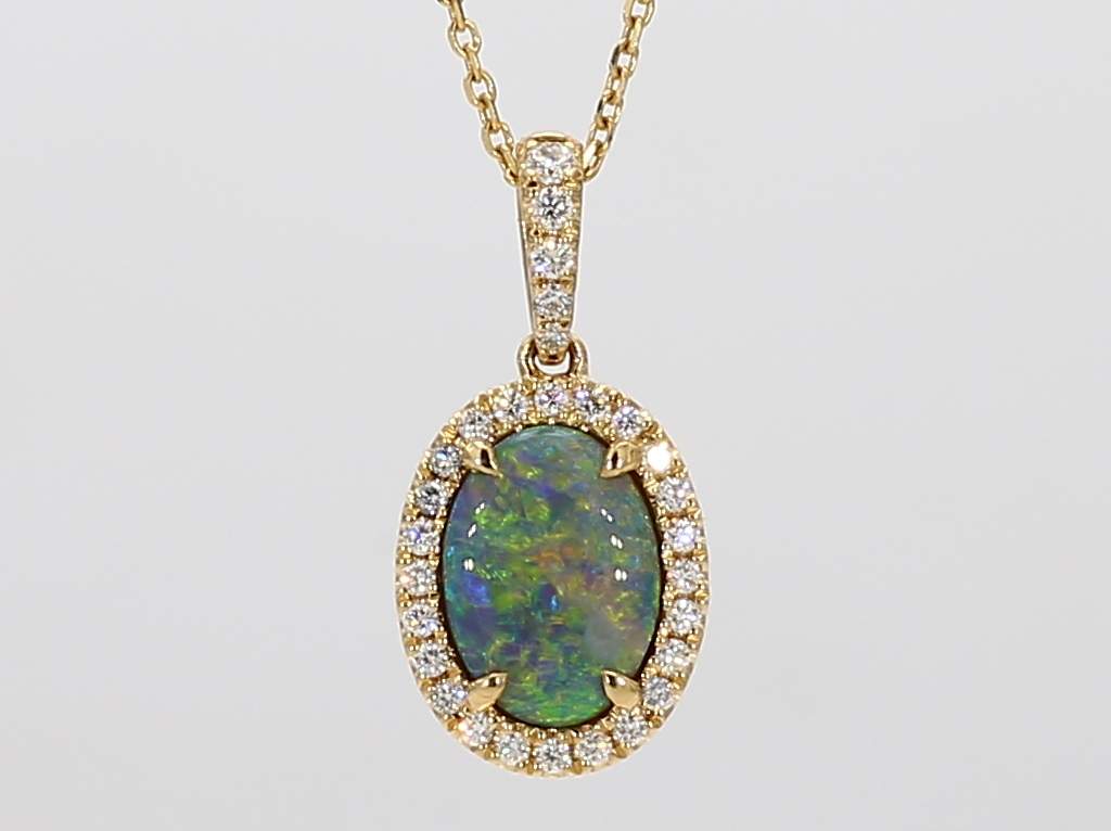 OVAL BLACK OPAL & ROUND DIAMOND 18KY PENDANT
