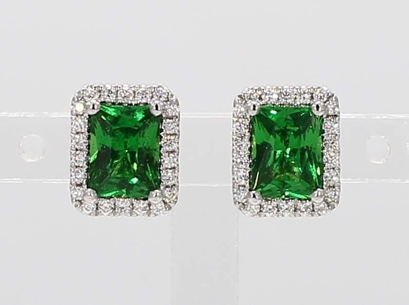 RADIANT TSAVORITE GARNET & ROUND DIAMOND 14KW EARRING