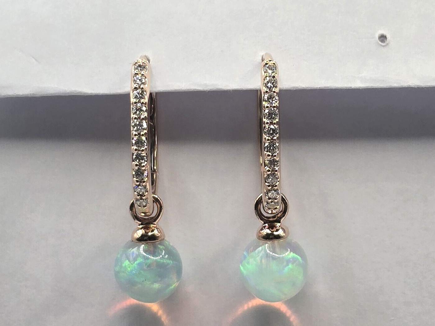 OPAL BALL & ROUND DIAMOND 14KR EARRING