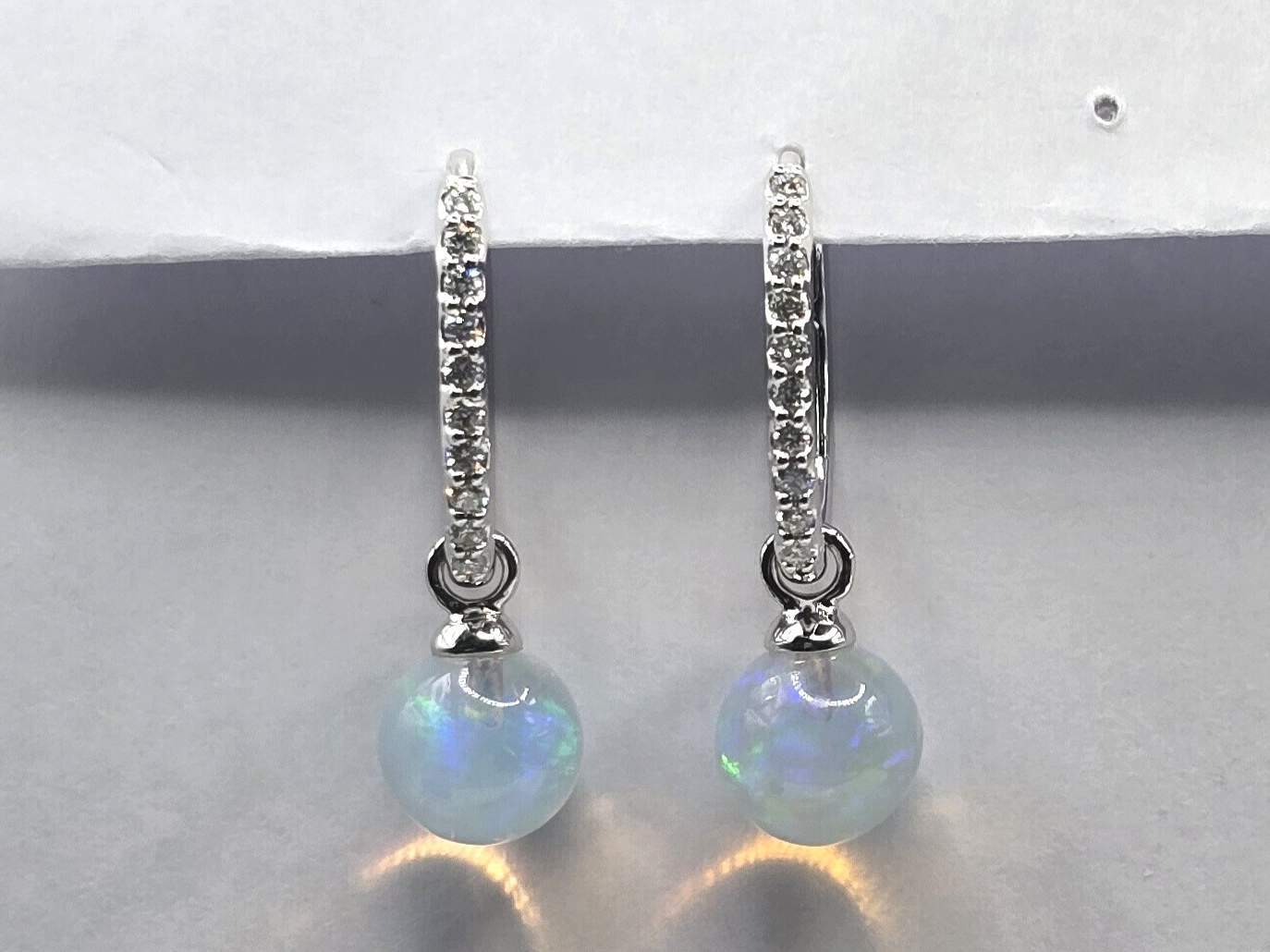 OPAL BALL & ROUND DIAMOND 14KW EARRING