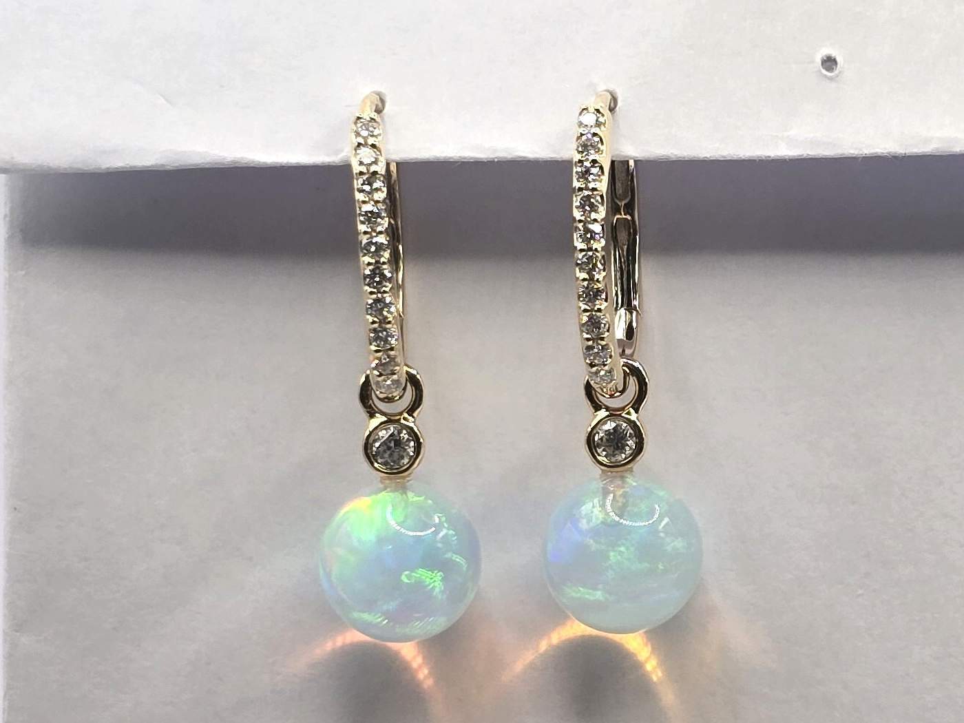 OPAL BALL & ROUND DIAMOND 14KY EARRING