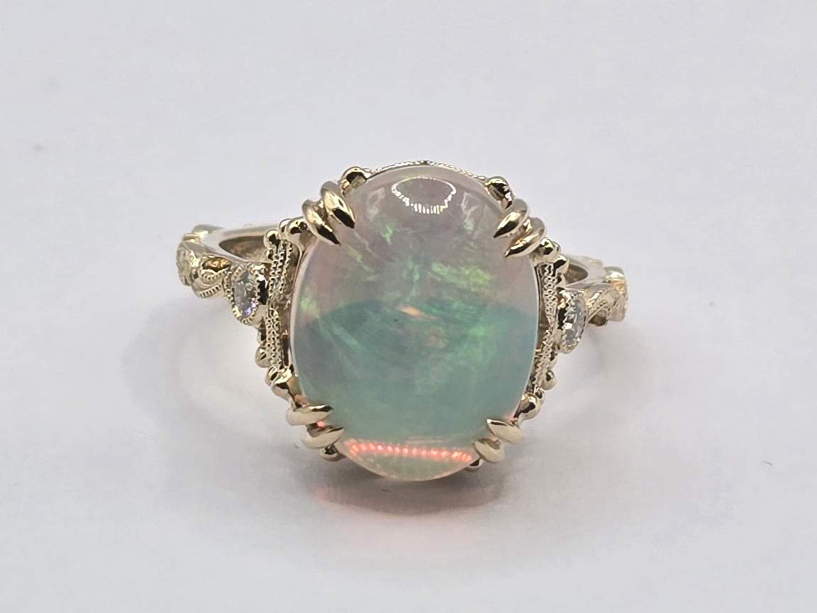 OVAL OPAL & ROUND DIAMOND 14KY RING
