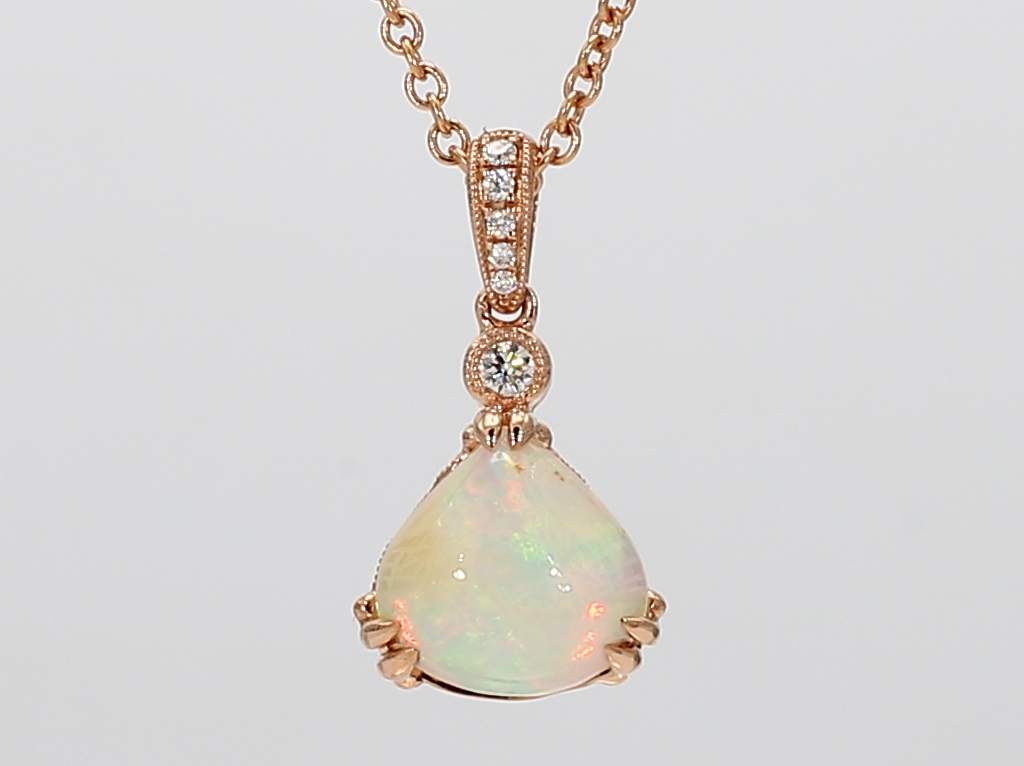 PEAR SHAPE OPAL & ROUND DIAMOND 14KR PENDANT