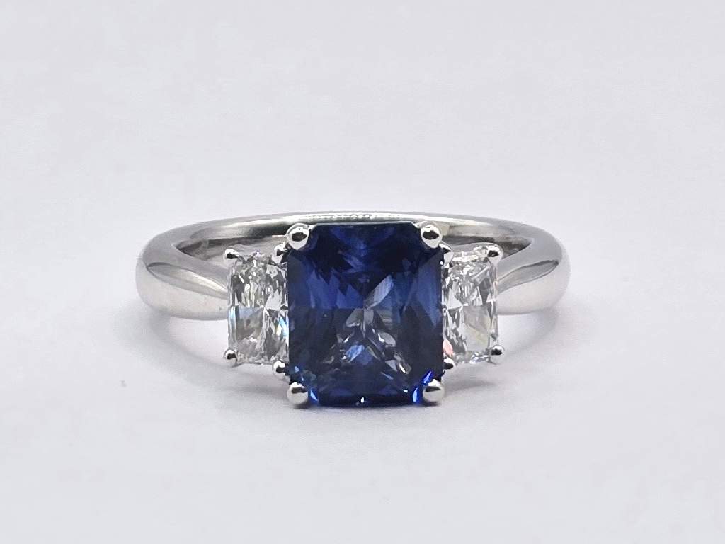 RADIANT SAPPHIRE & RADIANT DIAMOND PLATINUM RING