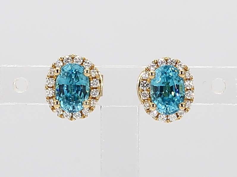 OVAL ZIRCON & ROUND DIAMOND 14KY EARRING