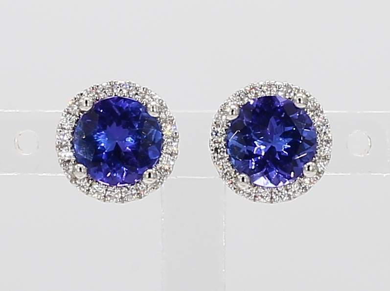 ROUND TANZANITE & ROUND DIAMOND 14KW EARRING