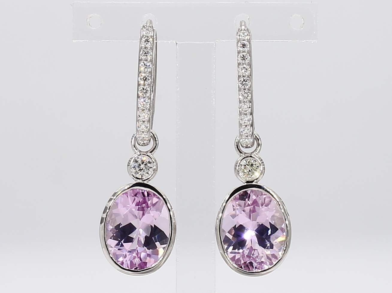 OVAL PINK TOPAZ & ROUND DIAMOND 14KW EARRING