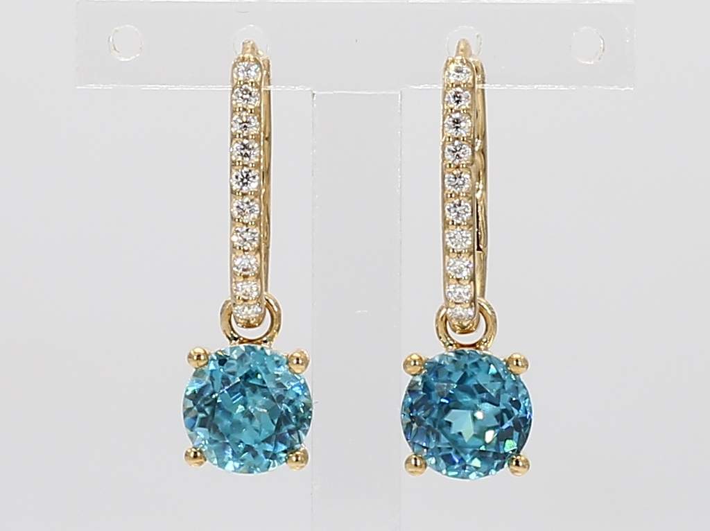 ROUND ZIRCON & ROUND DIAMOND 14KY EARRING