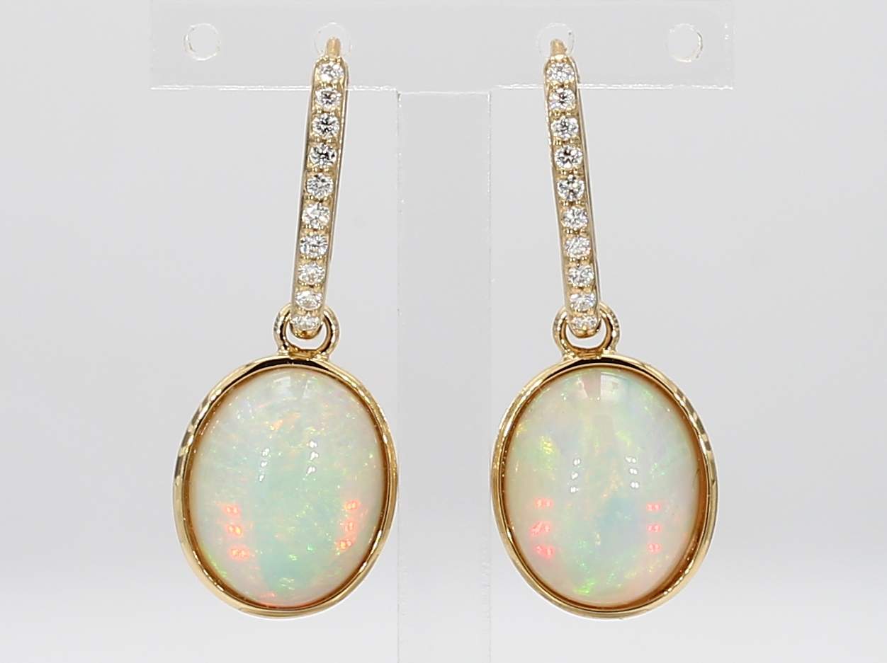 OVAL OPAL & ROUND DIAMOND 14KY EARRING