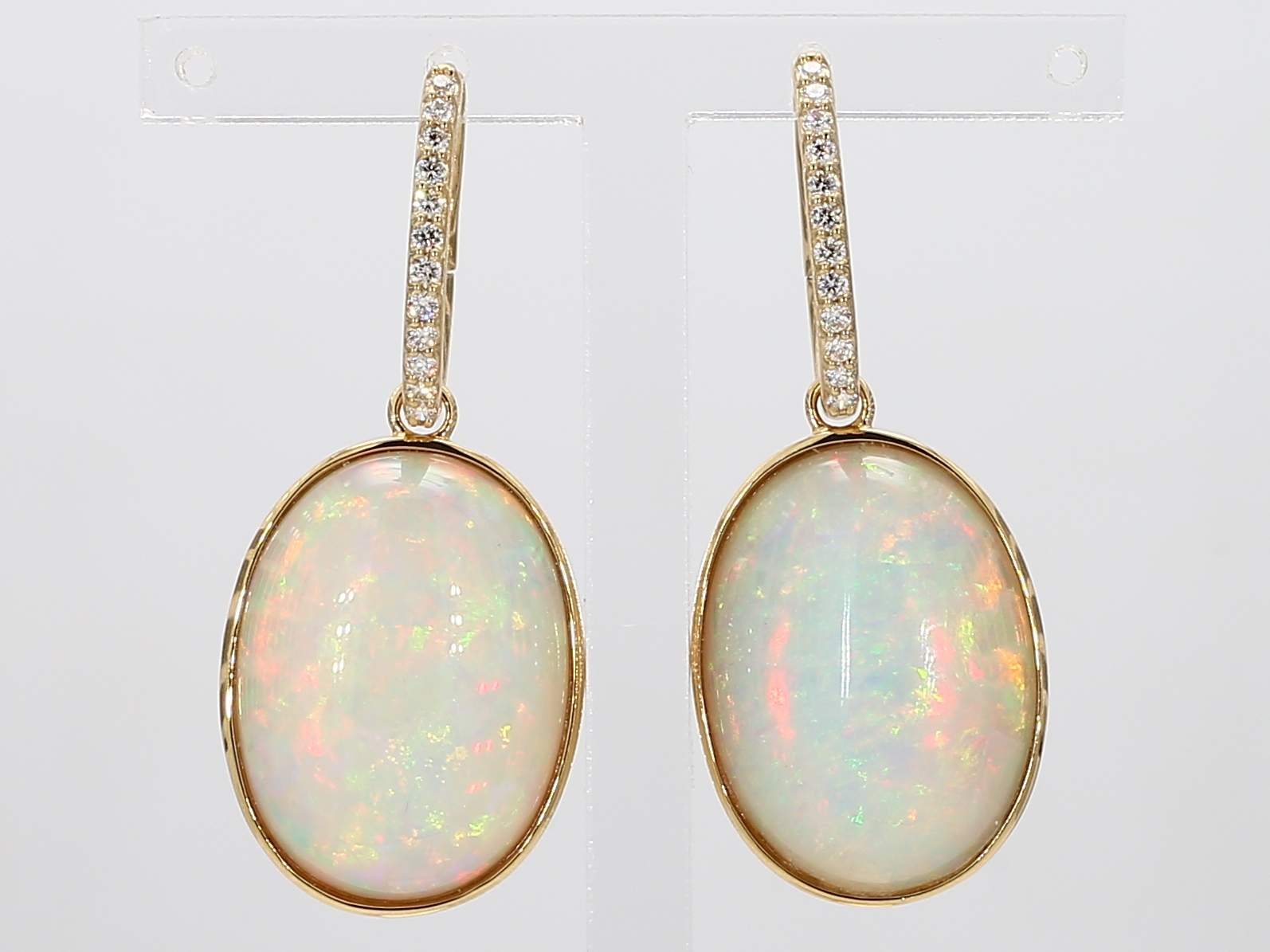 OVAL OPAL & ROUND DIAMOND 14KY EARRING