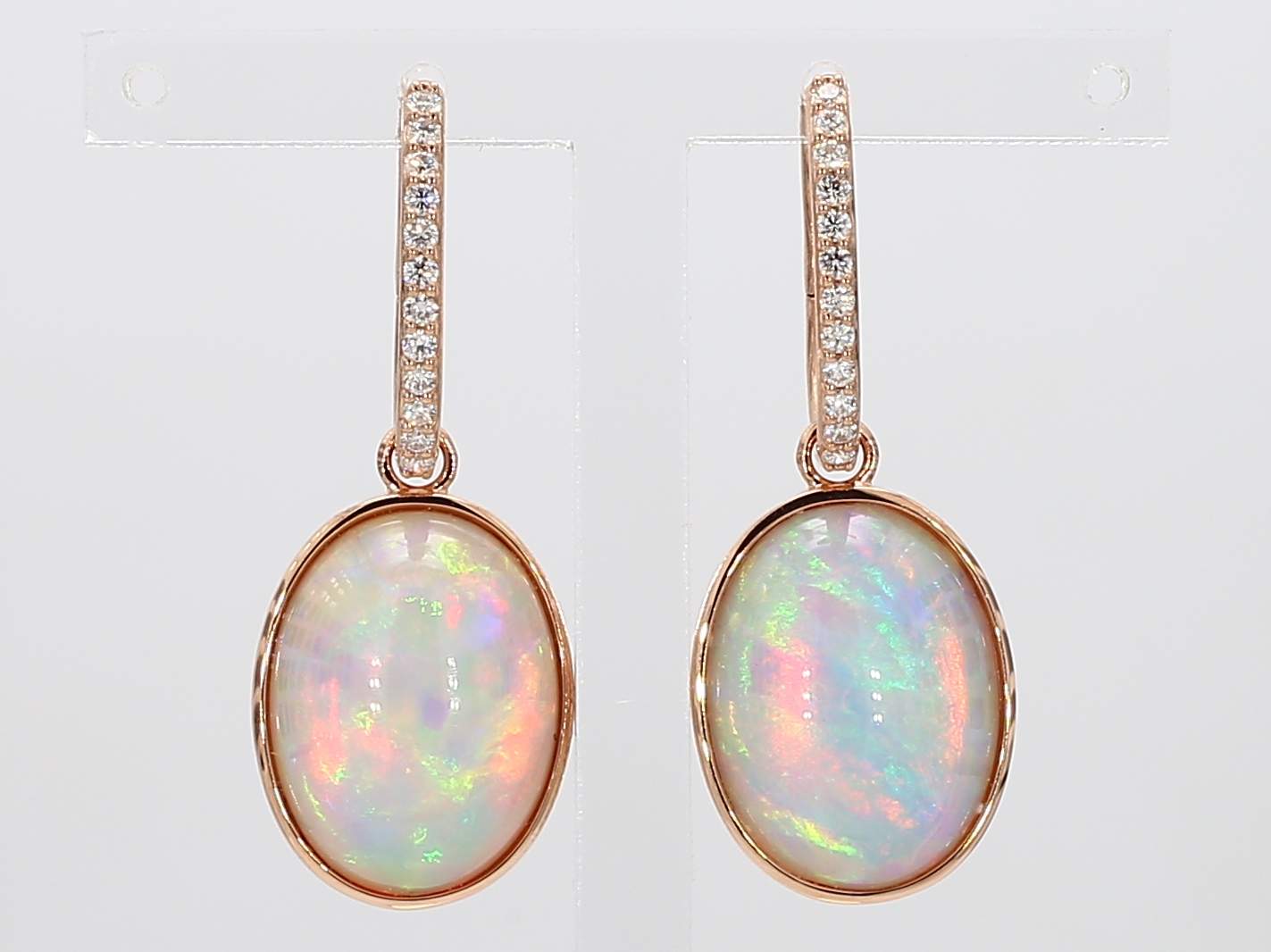 OVAL OPAL & ROUND DIAMOND 14KR EARRING