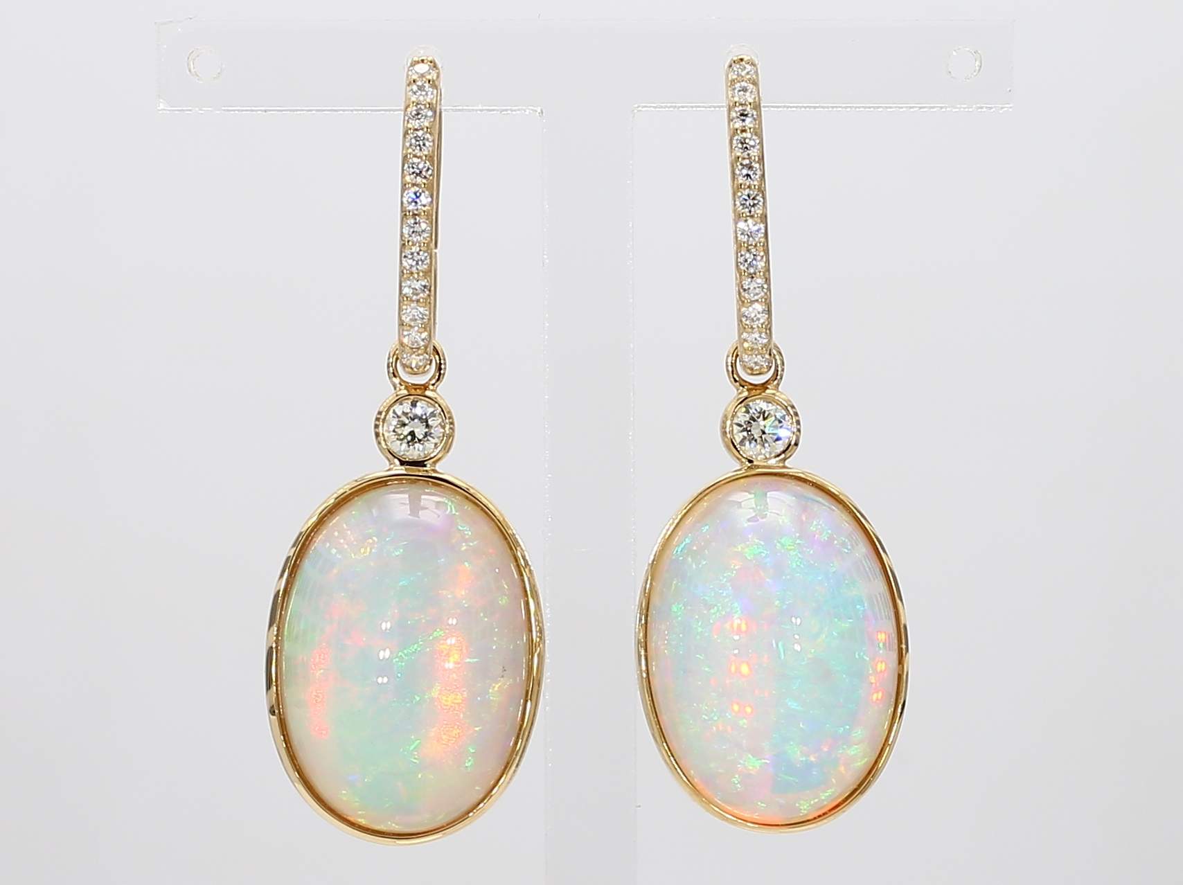 OVAL OPAL & ROUND DIAMOND 14KY EARRING