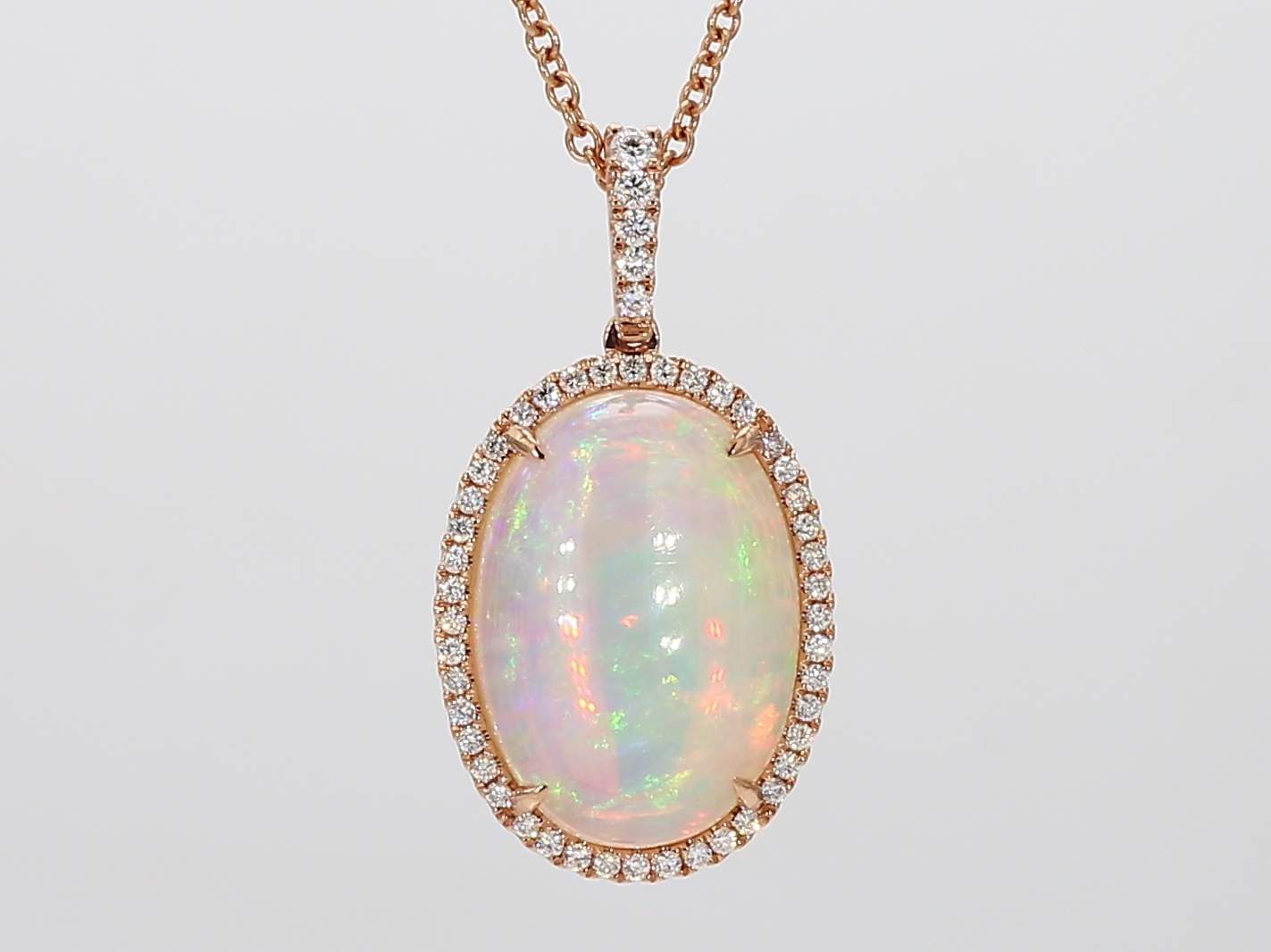 OVAL OPAL & ROUND DIAMOND 14KR PENDANT