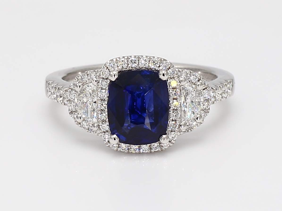 CUSHION SAPPHIRE & HALF MOON & ROUND DIAMOND PLATINUM RING