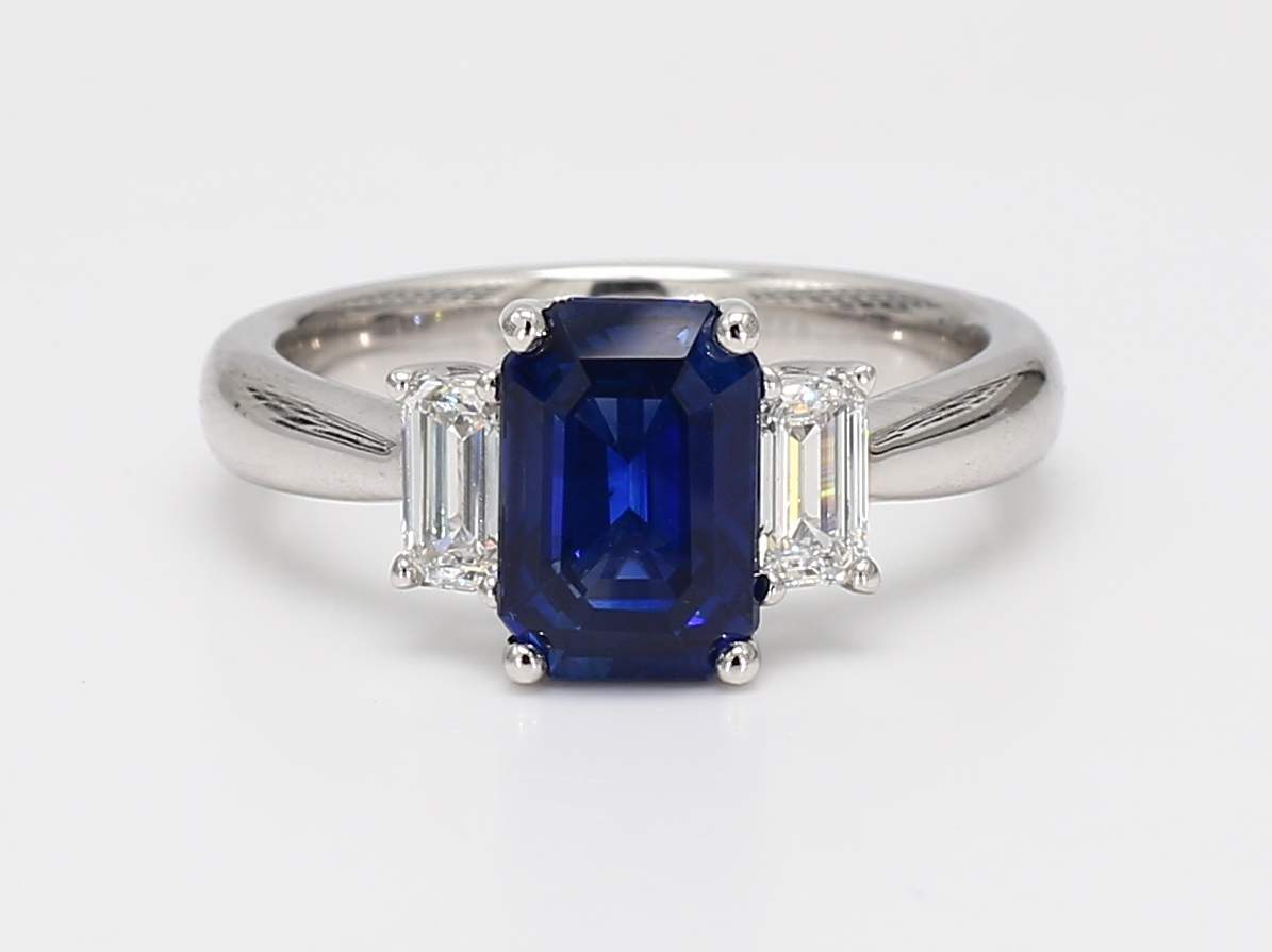 EMERALD CUT SAPPHIRE & EMERALD CUT DIAMOND PLATINUM RING