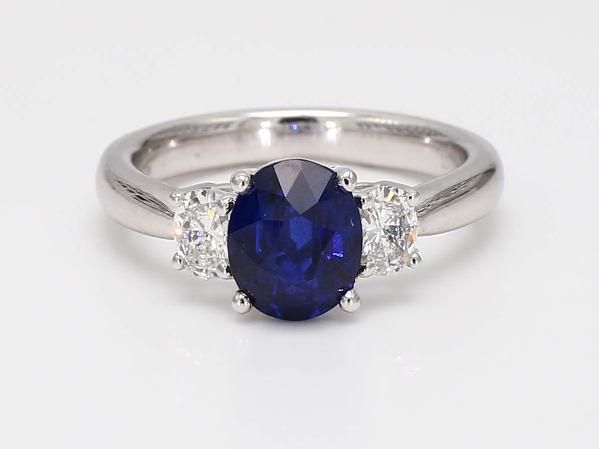 OVAL SAPPHIRE & OVAL DIAMOND PLATINUM RING