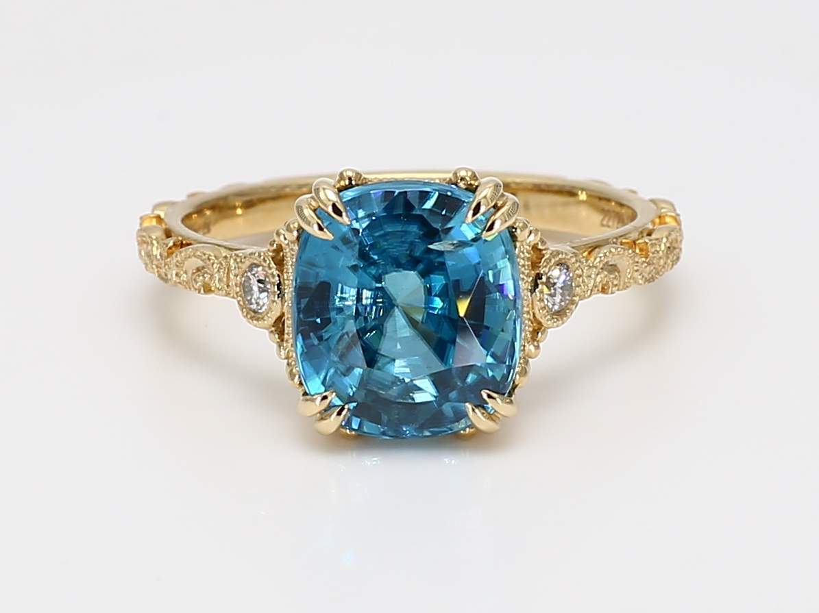 CUSHION ZIRCON & ROUND DIAMOND 14KY RING