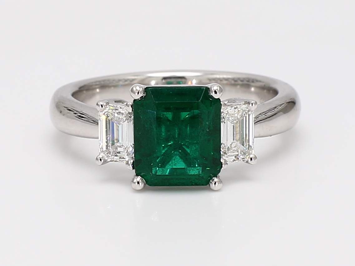 EMERALD CUT EMERALD & EMERALD CUT DIAMOND PLATINUM RING