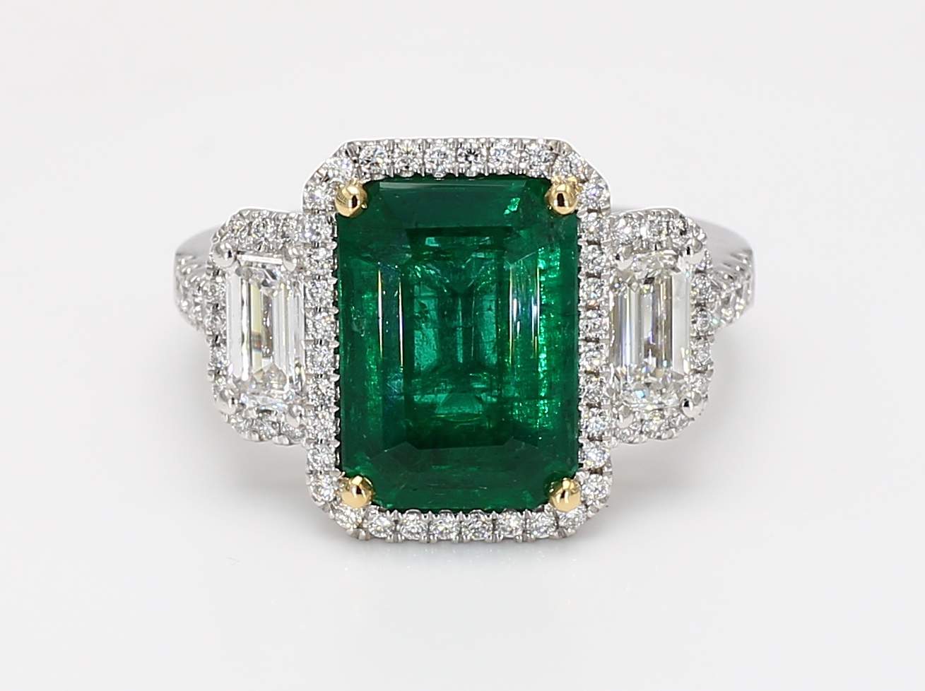EMERALD CUT EMERALD CDC 2505463 & EMERALD CUT & ROUND DIAMOND PLATINUM & 18KY RING