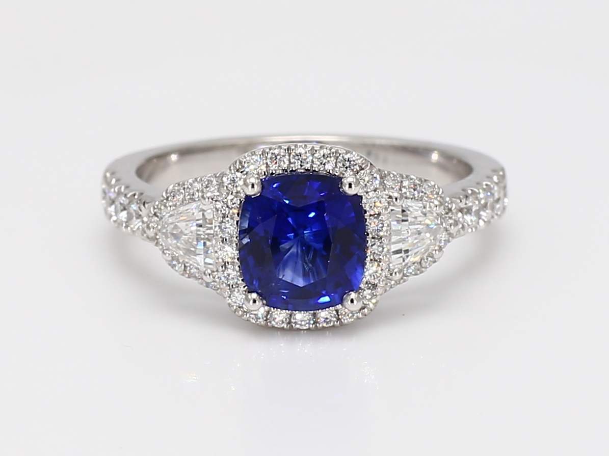 CUSHION SAPPHIRE & SHIELD & ROUND DIAMOND PLATINUM RING