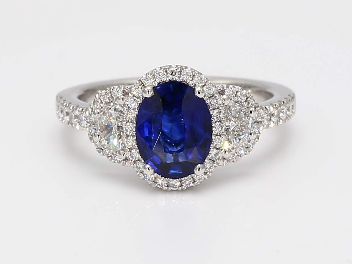 OVAL SAPPHIRE & HALF MOON & ROUND DIAMOND PLATINUM RING