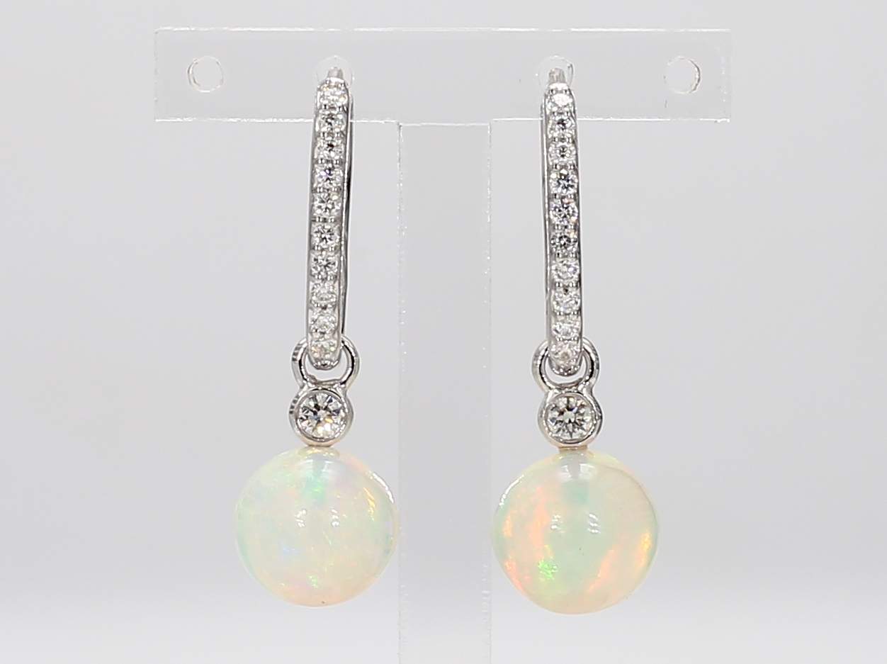 OPAL BALL & ROUND DIAMOND 14KW EARRING