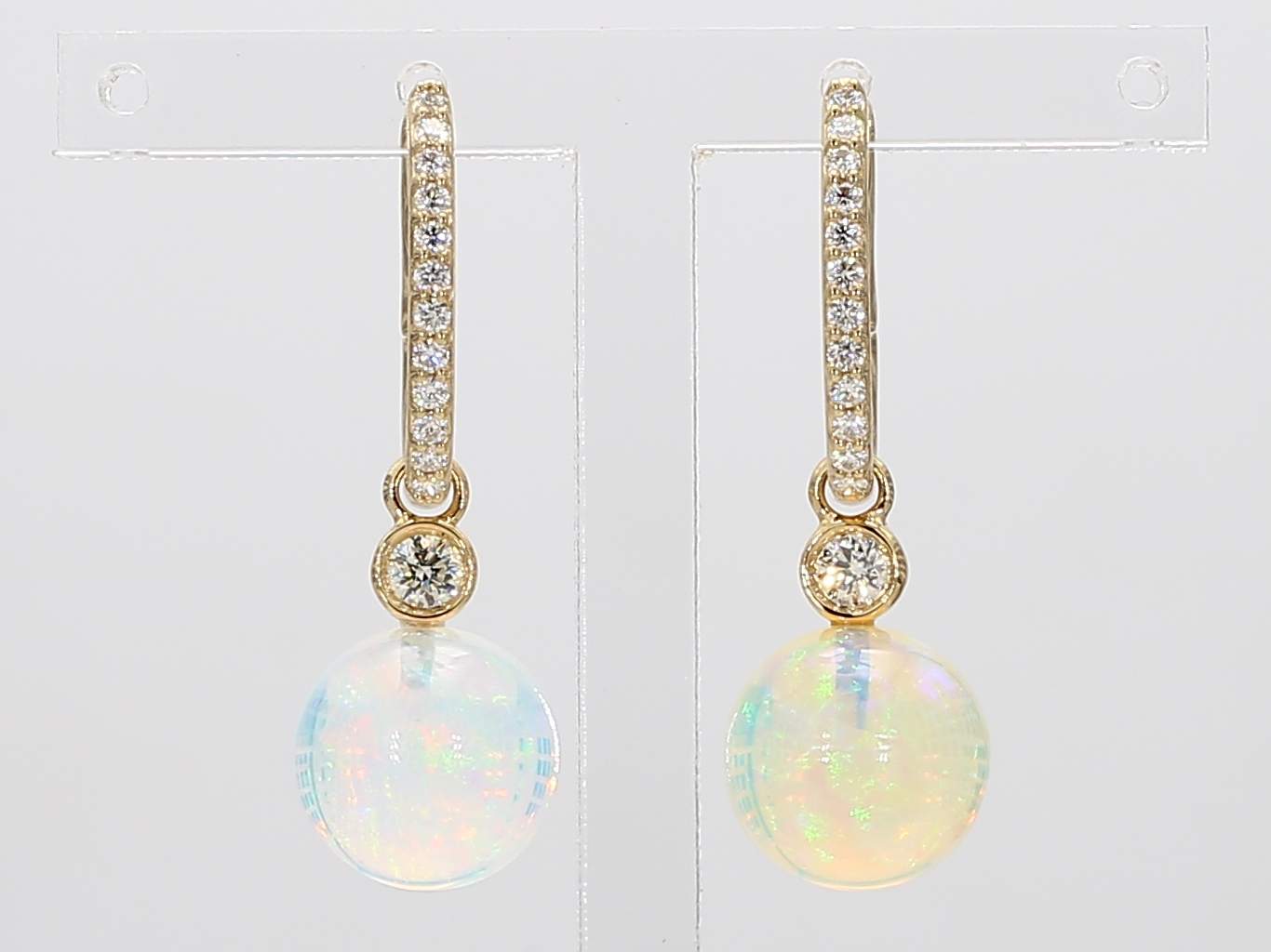 OPAL BALL & ROUND DIAMOND 14KY EARRING