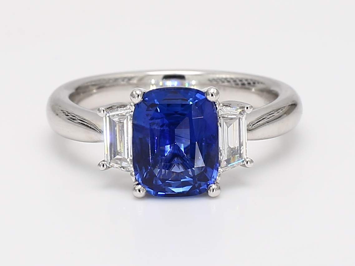 CUSHION SAPPHIRE & TRAPEZOID DIAMOND PLATINUM RING