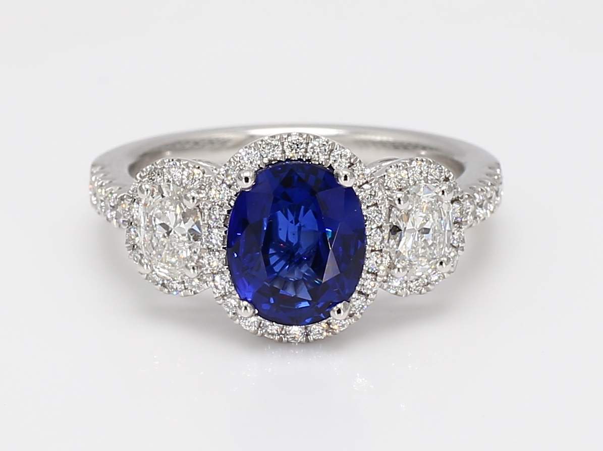OVAL SAPPHIRE & OVAL & ROUND DIAMOND PLATINUM RING