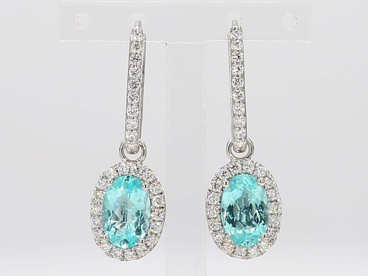 OVAL PARAIBA TOURMALINE GIA 2233595190, 2235595137 & ROUND DIAMOND 18KW EARRING