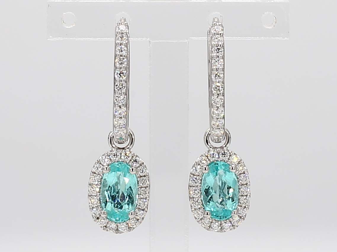 OVAL PARAIBA TOURMALINE GIA 5232594160, 2231594165 & ROUND DIAMOND 18KW EARRING